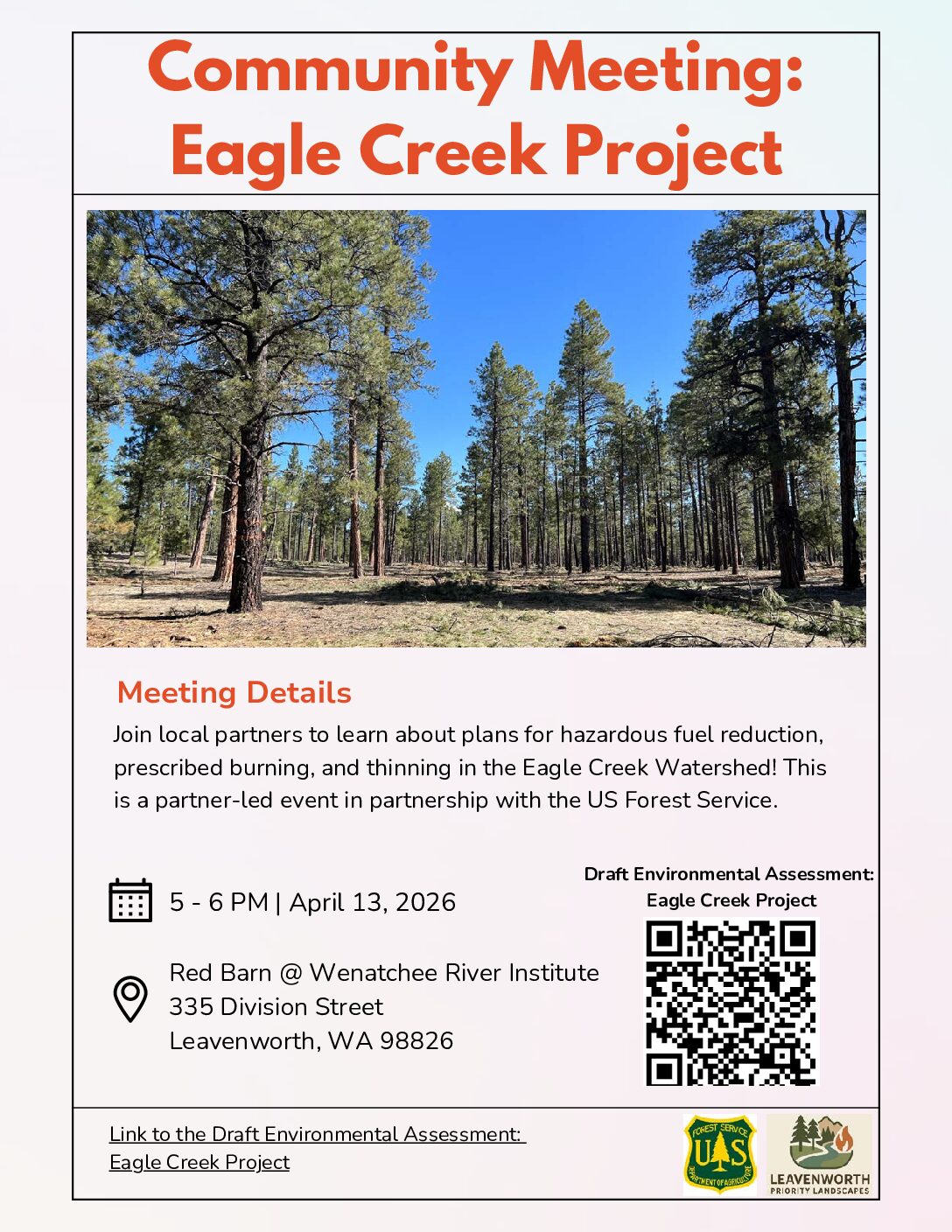 Join local partners to learn about plans for hazardous fuel reduction, prescribed burning, and thinning in the Eagle Creek Watershed! This is a partner-led event in partnership with the US Forest Service.